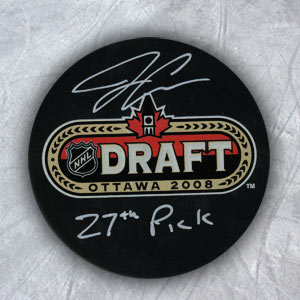 AJ Sports World CRLN117050 JOHN CARLSON 2008 NHL Draft Day Puck Autographed w- 27th Pick Inscription