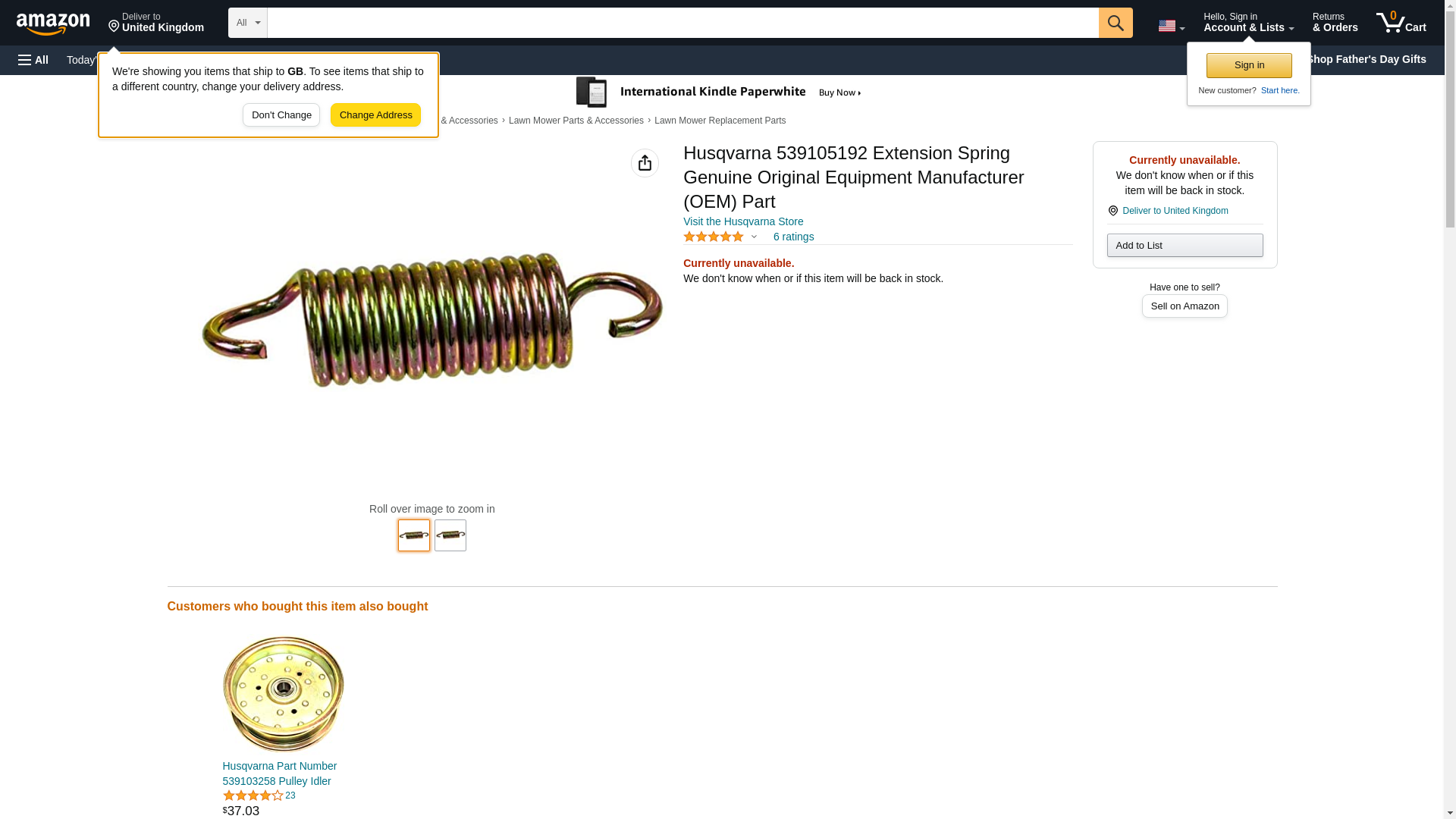Husqvarna 539105192 Extension Spring Genuine Original Equipment Manufacturer (OEM) Part