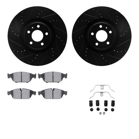 8512-73082, Rotors-Drilled and Slotted-Black w/ 5000 Advanced Brake Pads incl. Hardware, Zinc Coated
