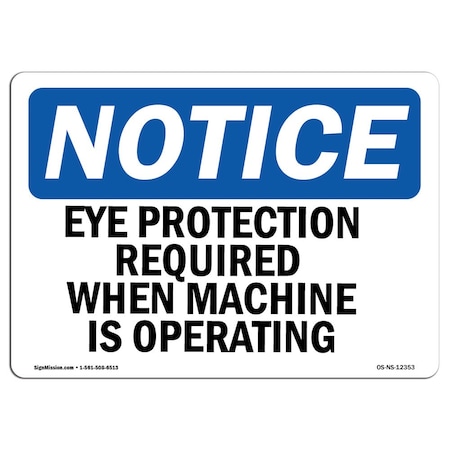 OSHA Notice Sign, Eye Protection Required When Machine Is Operating, 24in X 18in Decal