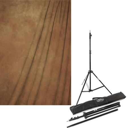Savage Infinity Hand Painted Muslin Background kits are heavy duty, professional quality, and created with a special multi-layering painting process to create a unique, rich look of an old world muslin. These backdrops are one large piece of fabric with a 3" rod pocket sewn in for quick and easy hanging. These backdrop are Not machine washable but can be easily cleaned with a damp sponge. Also included is a versatile, yet compact metal portable background stand. The stand opens to 10� wide, 8' 10" high and collapses to 44" for ease of carrying. The vertical uprights can be used as light stands for a completely versatile all-in-one system. Comes complete with bag. The perfect background stand for location. <BR><BR><BR>Specifications:<BR>Muslin Color: Petra<BR>Muslin Size: 10x20<BR><BR>Stand Color: Matte black finish<BR>Max Height: 8' 10" <BR>Max Width: 10'<BR>Min Height: 44"<BR><BR>What's Included: background, stand, and carry bag.<BR><BR>Please Note: Although every effort was made to ensure accurate color representation, some variations may occur.