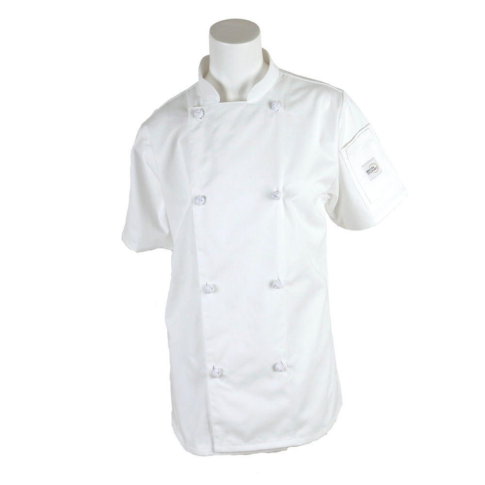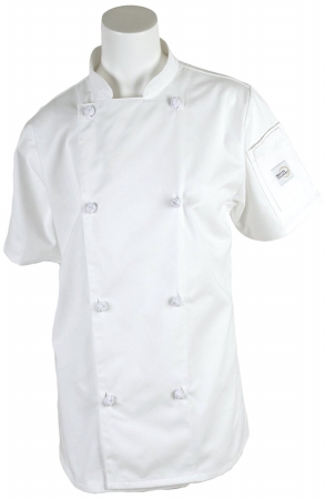 Mercer Culinary M61042WH3X Genesis Women's Short Sleeve Chef Jacket with Cloth Knot Buttons, 3X-Large, White