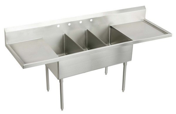 Elkay SS8372LR4 Sturdibilt Triple Compartment Scullery Commercial