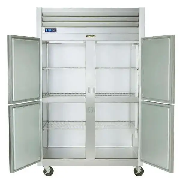Traulsen's Dealer's Choice Refrigerator, Reach-in, two-section, 46.0 cu. ft., self-contained refrigeration, microprocessor control, stainless steel front & half height doors (hinged left/left), anodized aluminum sides & interior, (3) epoxy coated shelves per section (factory installed), 6" high casters, R290 Hydrocarbon refrigerant, 1/3 HP, cETLus, NSF.