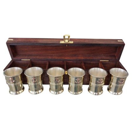 Hampton Nautical Brass Anchor Shot Glasses with Rosewood (Set of 6)