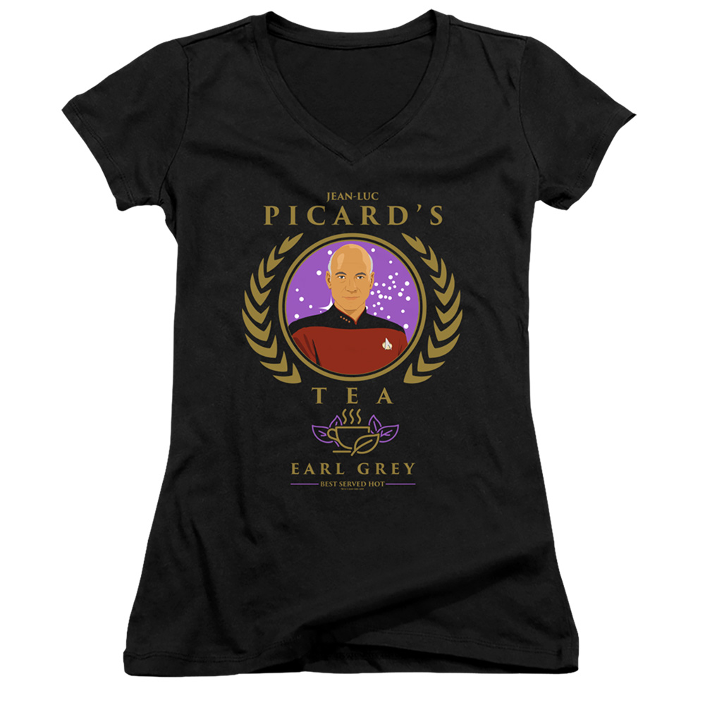 Trevco CBS2667-JV-2 Star Trek the Next Generation & Tea Earl Gray Hot Juniors V-Neck Sheer Jersery with Cap Sleeve,