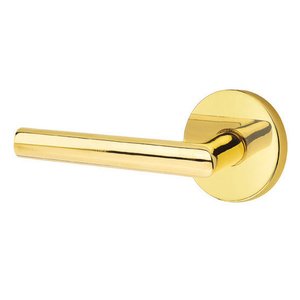 Brass Modern Hardware Collection - Half Dummy Left Handed Stuttgart Door Lever With Disk Rose in Unlacquered Brass by Emtek - 5059STU.HALF.US3NLLH | MyKnobs