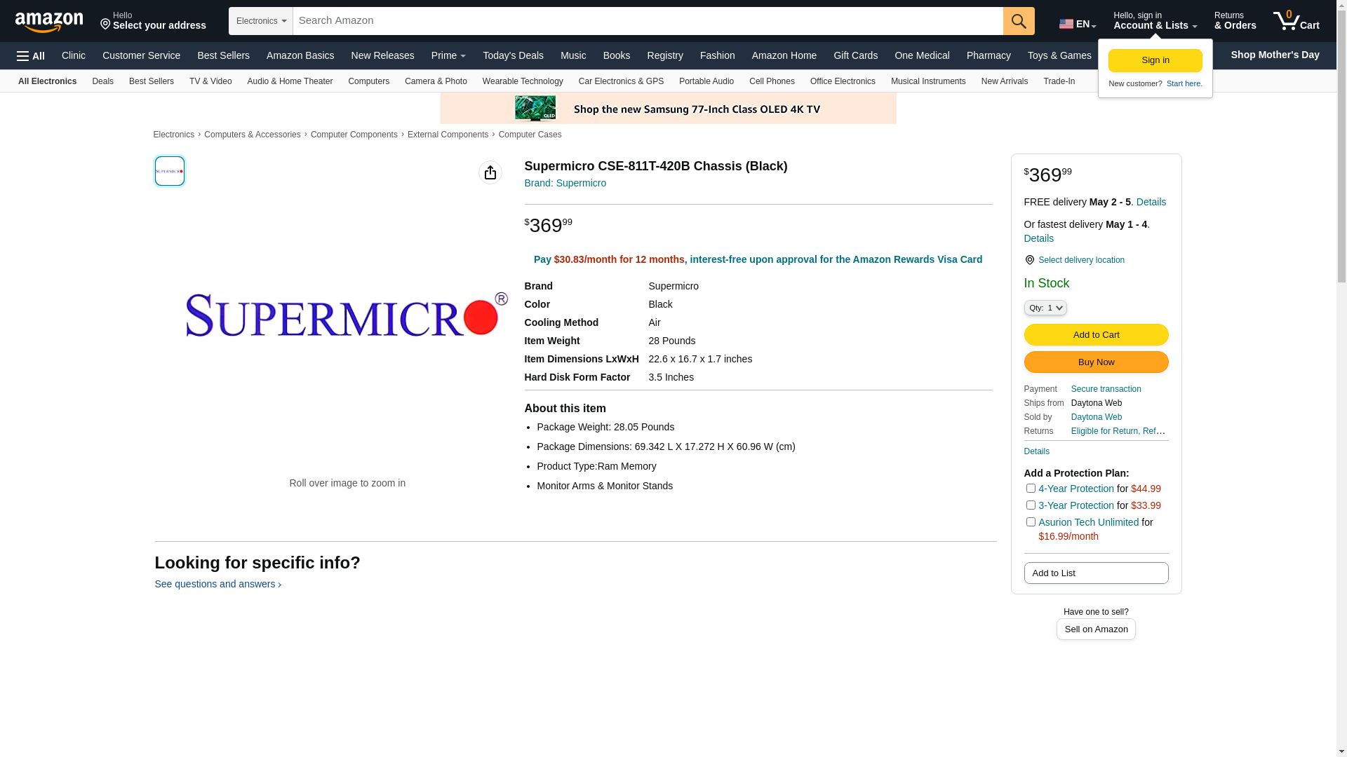 | Feature | Supermicro Case Rackmount SC811T-420 1U 2x1-in SAS/SATA Bays 2x 10cm Fan w/ SATA Backplane 420W P/S Black |