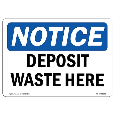OSHA Notice Sign, NOTICE Deposit Waste Here, 18in X 12in Decal