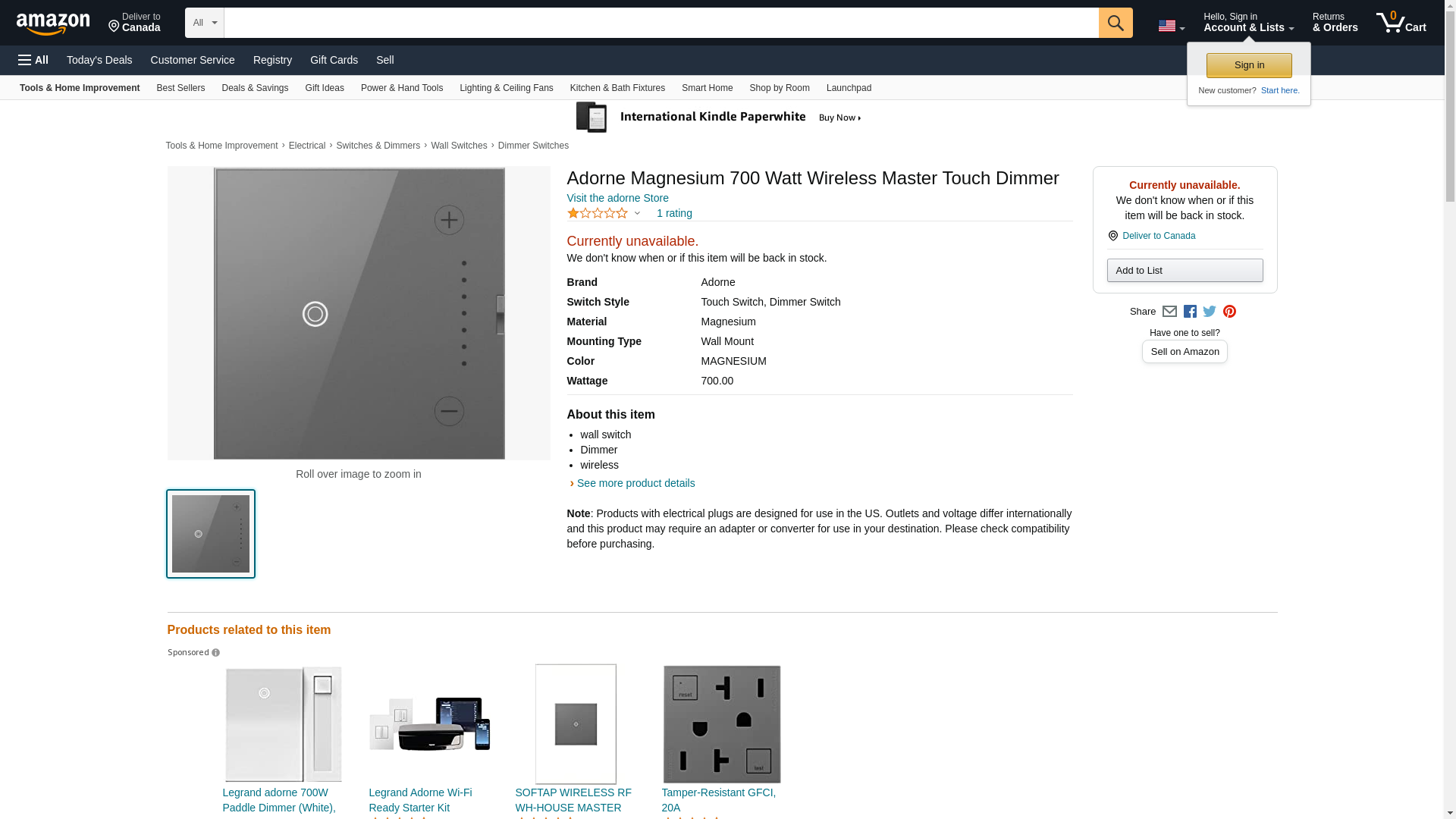 Adorne Magnesium 700 Watt Wireless Master Touch Dimmer