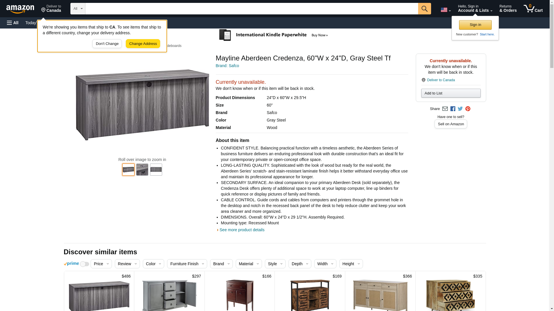 Mayline ACD6024LGS Aberdeen Credenza, 60"W x 24"D, Gray Steel Tf