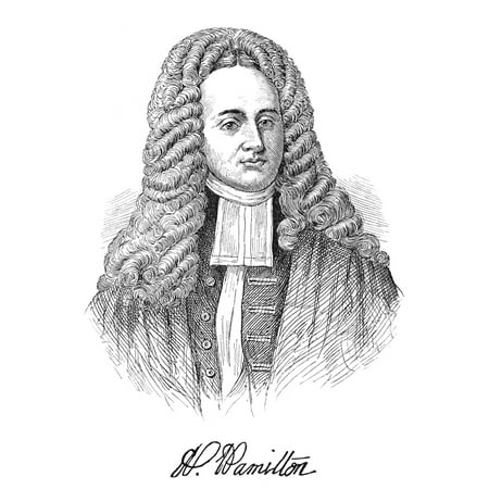 Andrew Hamilton N(C1676-1741) American Lawyer Line Engraving 19Th Century Rolled Canvas Art - (24 x 36)