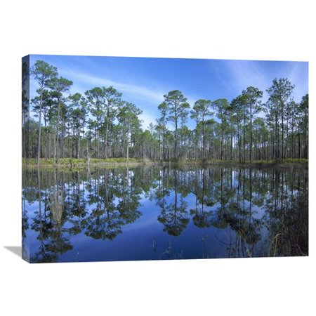 Global Gallery GCS-452063-2432-142 24 x 32 in. Pine Forest Mirrored in Reflection Pond, Ochlocknee River State Park&