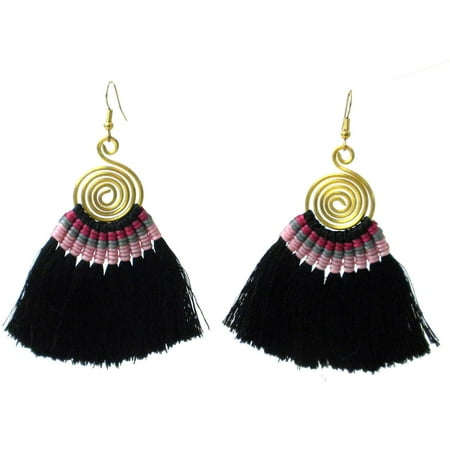 <ul> <li>Global Craft Tribal Spiral Tassel Earrings - Black - Global Groove (J)</li> <li>Global Craft</li> </ul>