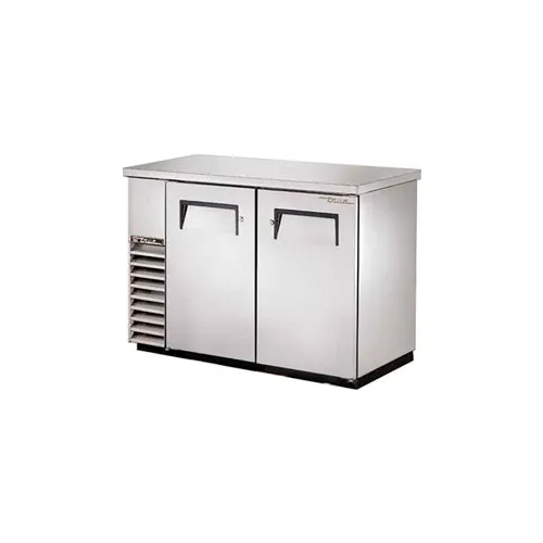 True S/S 2-Solid Door 4-Shelf Back Bar Cooler for 82 6-PacksThe True back bar coolers are designed using the highest quality materials. The oversized refrigeration system assures that you can serve the coldest product to customers. The refrigeration system holds temperatures between 33°F and 38°F. The front, sides and countertop are stainless steel. The larger fan blades give these coolers a more efficient low velocity, high volume airflow that ensures faster cooling of warm products.Width: 49-1/8" Depth: 24-1/2" Height: 35-5/8" Weight: 260 lbs Capacity: 2 half barrels or 82 6-packs 1/3 HP 7.0 Amps NEMA config: 5-15P heavy duty stainless steel NSF-7 compliant Ecomate insulation Zero ozone depletion (ODP), zero global warming potential (GWP) CFC free 134A refrigerant Refrigeration system holds temperatures between 33°F and 38°F Door locks standard 4 adjustable PVC coated shelves 2 self-closing doors 5 year condenser warranty Unit is pre-wired for 115/60/1 phase 15 amp outlet Made in the USA Model #: TBB-24-48-S 898106
