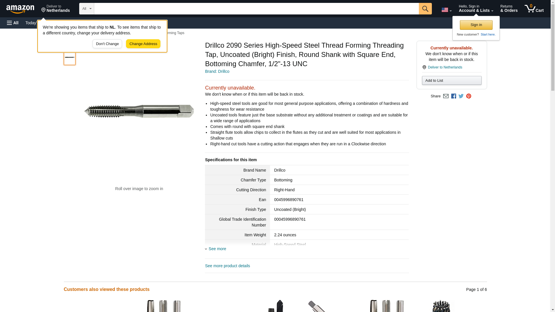 DRILLCO 209A132CB 1/2-13 Thread Forming Taps High Speed Steel Bright Bottoming - MROSupply.com