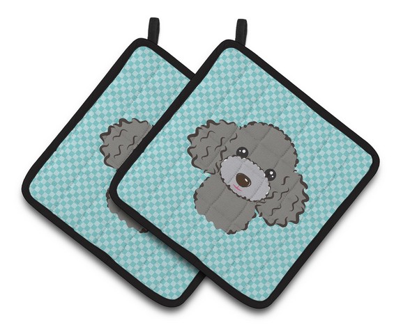 Carolines Treasures BB1197PTHD Checkerboard Blue Silver Gray Poodle Pair of Pot Holders, 7.5 x 3 x 7.5 in.