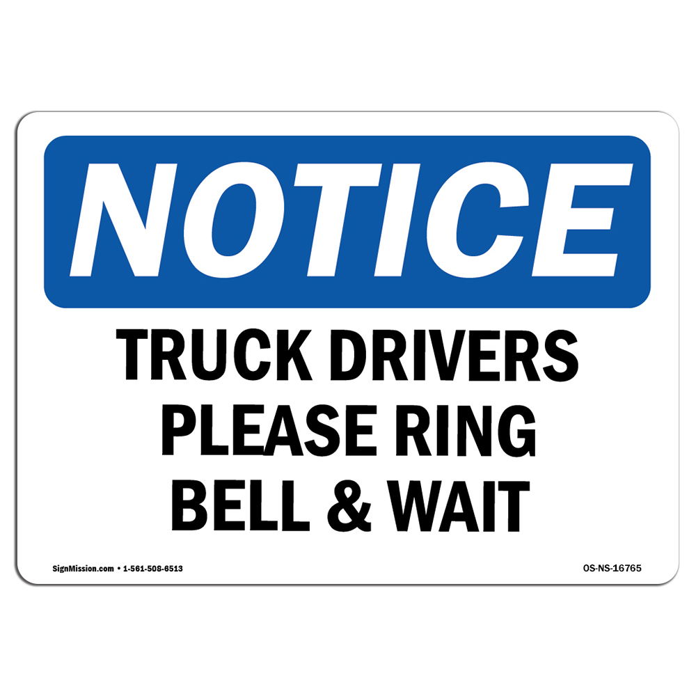 OSHA Notice Sign - NOTICE Truck Drivers Please Ring Bell And Wait | Aluminum Sign | Protect Your Business, Work Site, Warehouse & Shop | Made in the USA