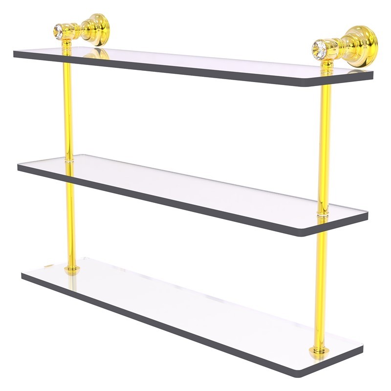 ALLIED BRASS CC-5-22-PB CAROLINA CRYSTAL 22 INCH TRIPLE GLASS SHELF, POLISHED BRASS