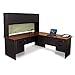 Pronto Marvel Office Desk with Return and Pedestal - 78" Wx78 Dx29 H - Black Desk/Mahogany Top/Peridot Tack Board - Black