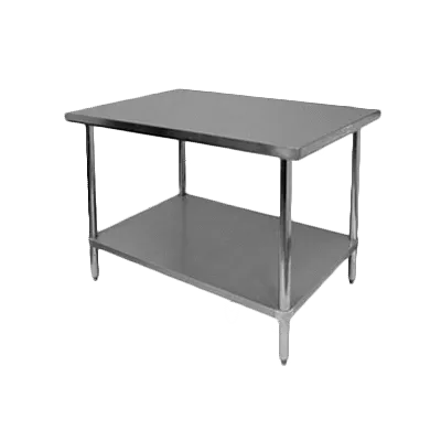 30†w x 48" l x 35" h, stainless steel worktable with a flat top. the heavy duty stainless steel construction of the worktable is not just strong enough to withstand the pressures of daily applications but is also strong enough to carry heavy supplies or equipment on either its top and under shelf. constructed of 18 gauge 430 series stainless steel for strength but also resistance against corrosion and formability. stainless steel worktable surface has curved edges for safety and comfort. it incorporates a heavy duty adjustable galvanized under shelf and leveling feet. ideal for restaurant, church, hotel, super market, food processing plant, any commercial application or home kitchen. shipped knocked down for safe transport but is easily assembled. nsf certified. please note: this item must ship by trucking/ freight to prevent from damage. no ups/fedex/ usps allow.