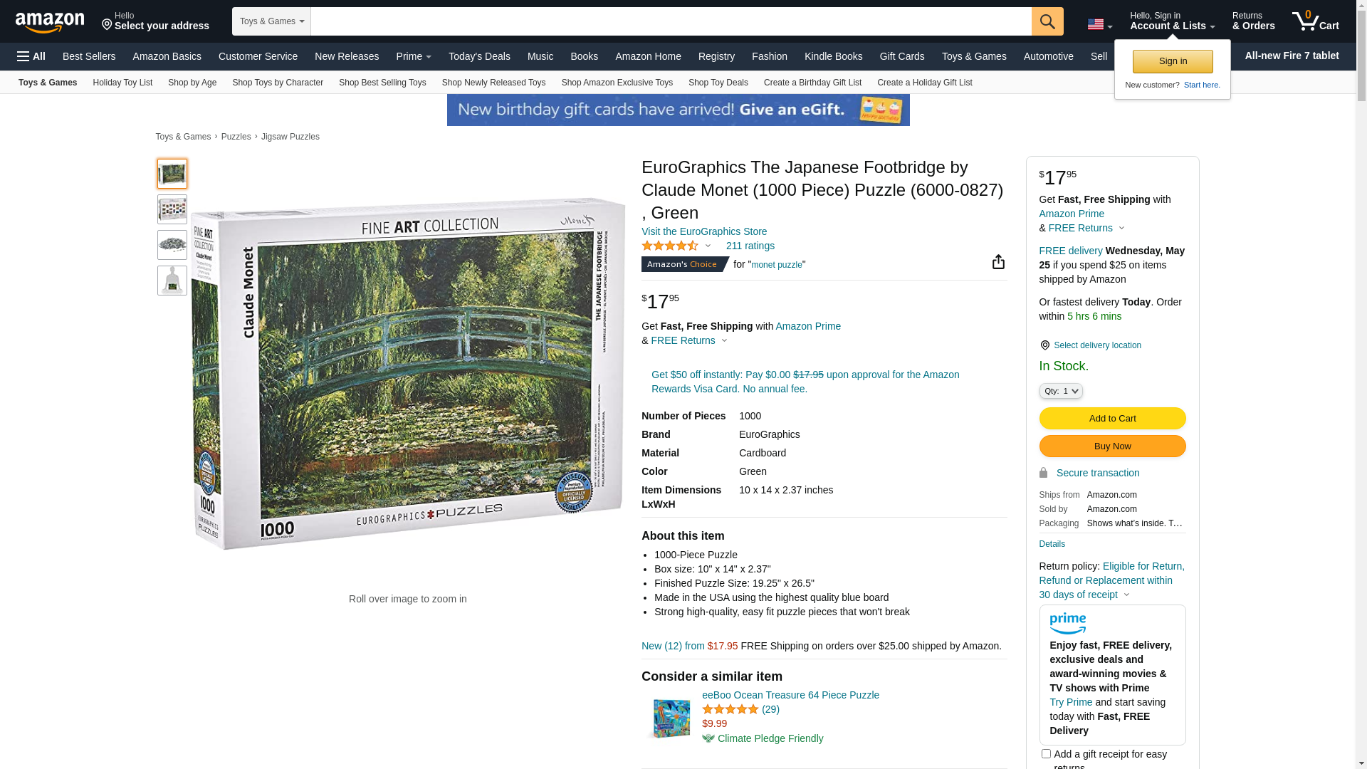 EuroGraphics The Japanese Footbridge by Claude Monet (1000 Piece) Puzzle (6000-0827) , Green