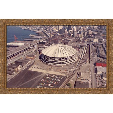Kingdome 40x26 Large Gold Ornate Wood Framed Canvas Art - Home of the Seattle Mariners