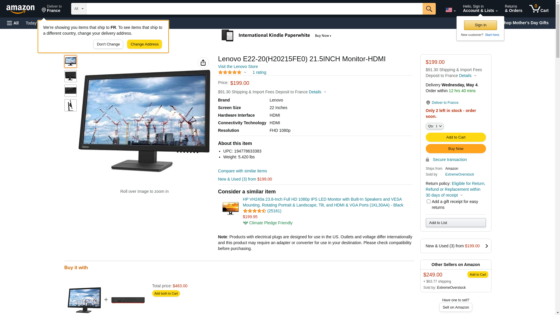 Lenovo E22-20(H20215FE0) 21.5INCH Monitor-HDMI