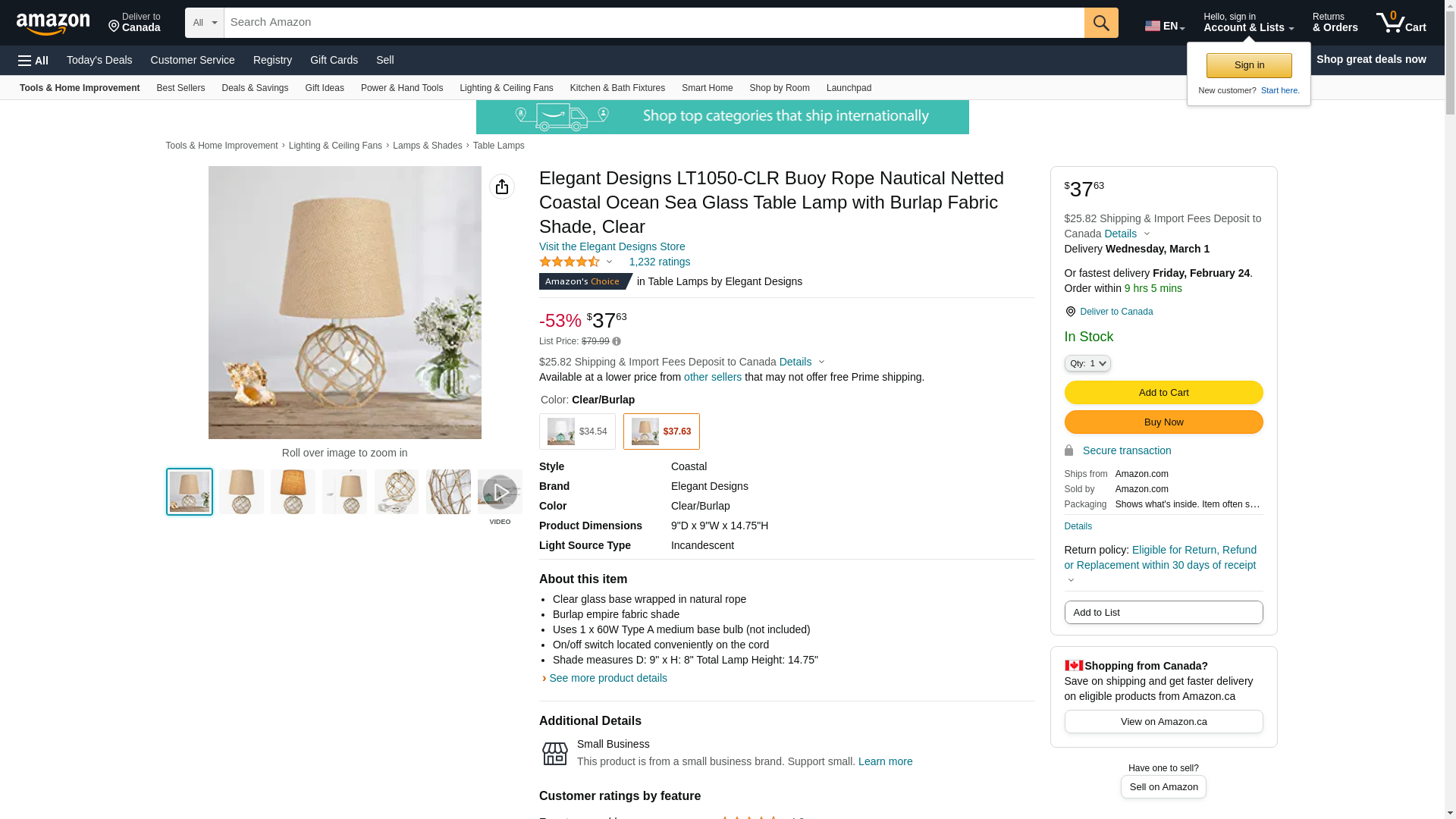Elegant Designs LT1050-CLR Buoy Rope Nautical Netted Coastal Ocean Sea Glass Table Lamp with Burlap Fabric Shade, Clear