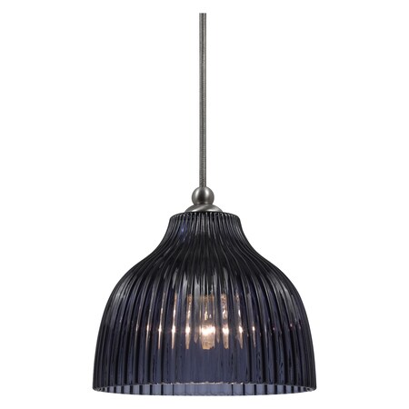Cal 4.7" Tall Glass and Metal Pendant with Brushed Steel 60W/Blue Violet/Glass/Round/Brushed Steel/Lifestyle