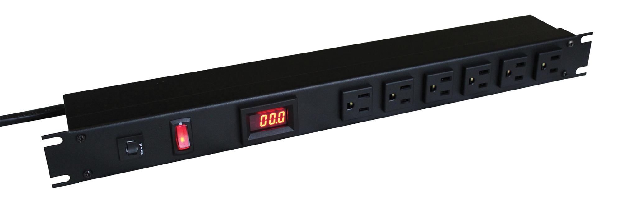 Hammond Rackmount Strip, 6 Outlet, 20A, 125Vac - 1589T6F1BKRRAM
