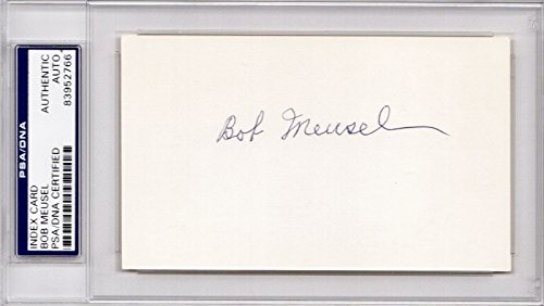 Real Deal Memorabilia BMeuselGP-2-PSA Bob Meusel Signed Autographed 1949 Government Postcard - Index Card- New York Yank