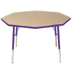 Creative Colors M48OCPR-SN Activity Table, Standard Height, Self-Leveling Glides, 48" Octagon, Maple Top, Purple Edge