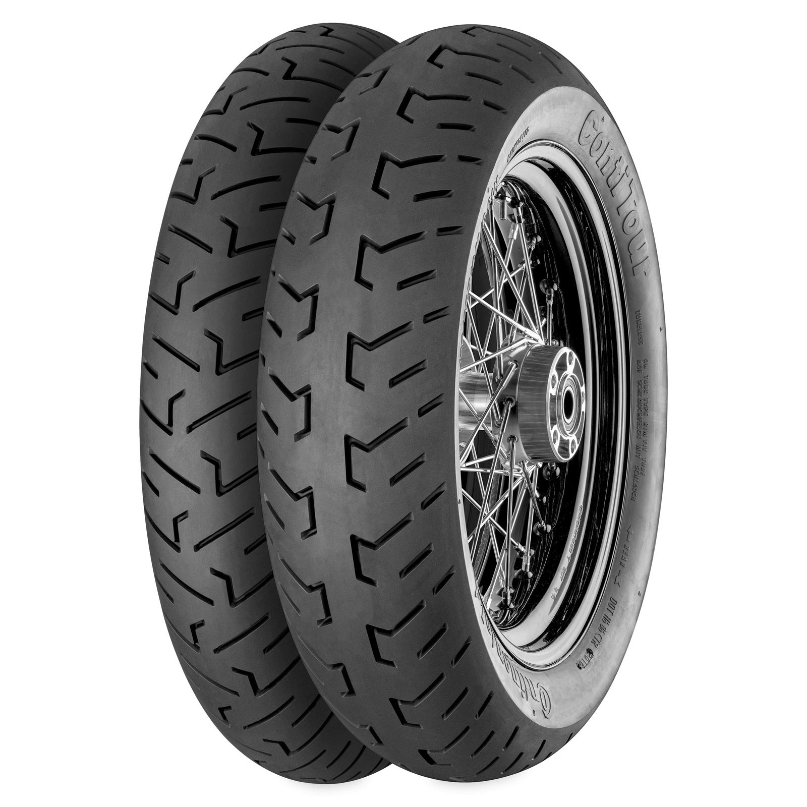 High performance pattern design for better drainage. Consistent performance during tire lifetime. MileagePlus: The MileagePlus technology features a compound that significantly extends mileage while maintaining exceptional handling. Continental Flat Tire Go Ahead in 2020 - Continental Motorcycle Launches 60-Day Satisfaction Guarantee Program - Customers who purchase a new set of ContiTour Tires from an authorized Continental Tire Dealer and aren't 100% satisfied with their tires, can return them within 60 Modern custom tire for cruisers and heavy touring bikes. Specially for heavy touring bikes, cruisers and Harleys® engineered carcass construction for easy handling, solid behavior and a high level of comfort. The MileagePlus Technology features a compound that significantly extends mileage while maintaining exceptional handling. Center tread band on the rear tire without grooves increases mileage and offers directional stability under adverse conditions (ruts, etc.).
