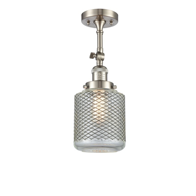 INNOVATIONS LIGHTING 201F-SN-G262-LED FRANKLIN RESTORATION STANTON 6 INCH ONE LIGHT CLEAR WIRE MESH GLASS SEMI-FLUSH...