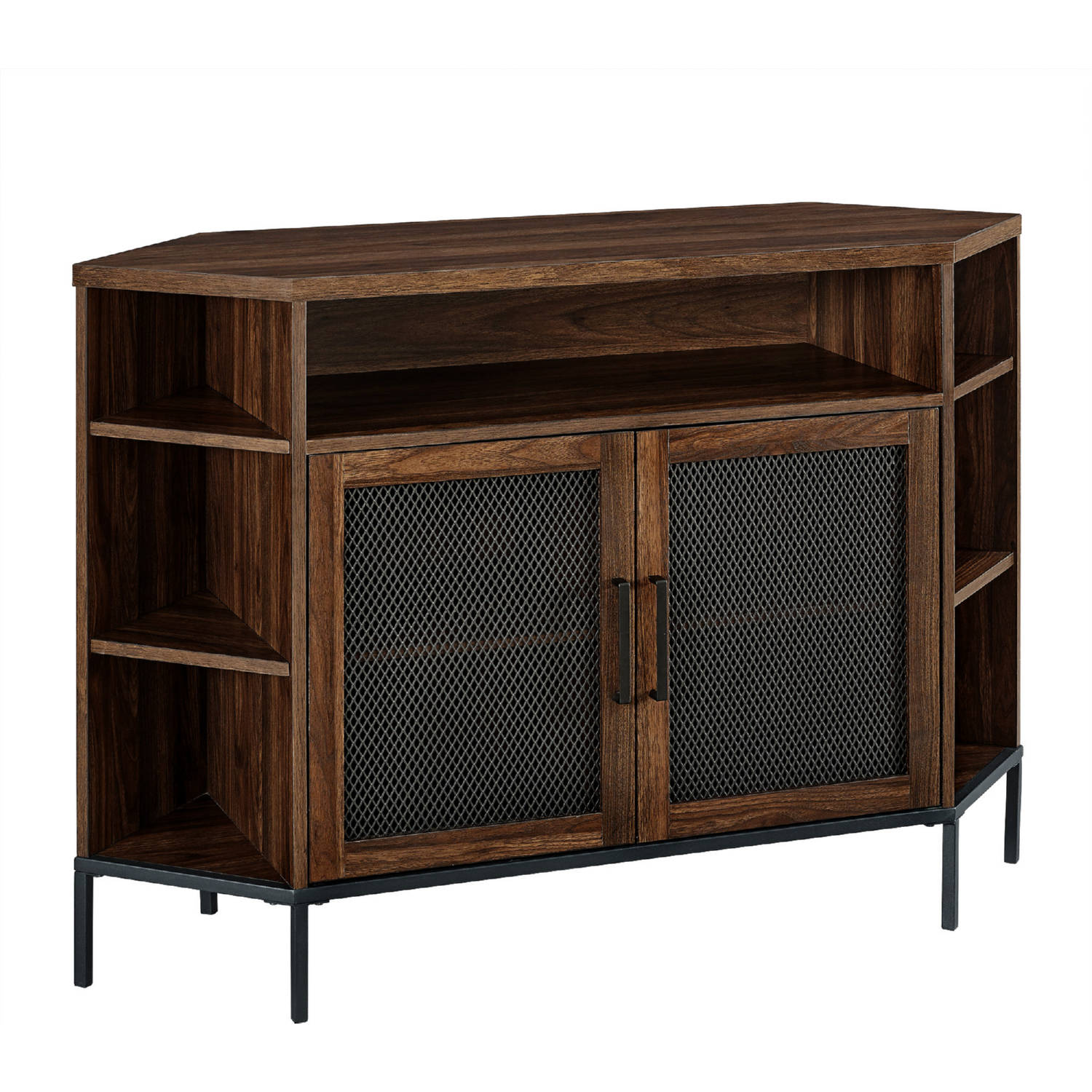 Walker Edison W48MVCRDW 48" Industrial Mesh Door Corner TV Stand in Dark Walnut