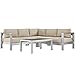 Modway Shore 4-Piece Aluminum Outdoor Patio Sectional Sofa Set in Silver Beige
