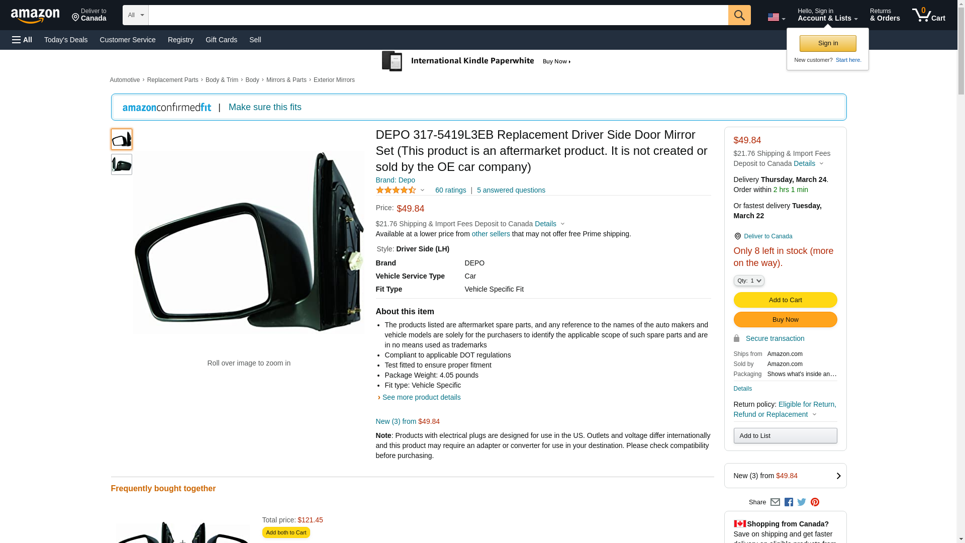 Replacement Depo 317-5419L3EB Driver Black Power Mirror For 05-10 Honda Odyssey