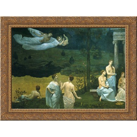 The Sacred Wood Cherished by the Arts and the Muses (detail) 24x20 Gold Ornate Wood Framed Canvas Art by Puvis de Chavannes, Pierre