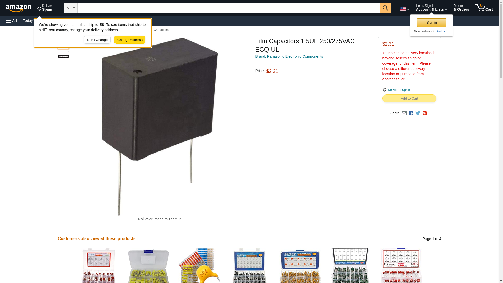 | Feature | Price For: Each. PANASONIC ECQ-U2A155ML CAPACITOR POLY FILM, 1.5UF, 275VAC, 20%, RAD |
