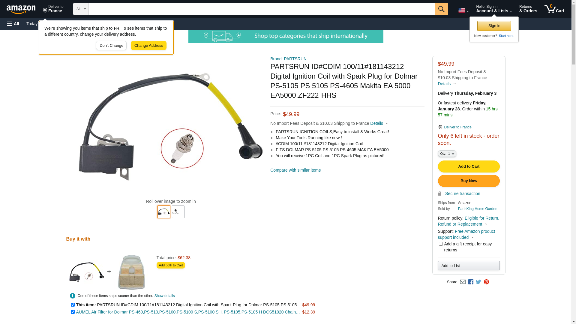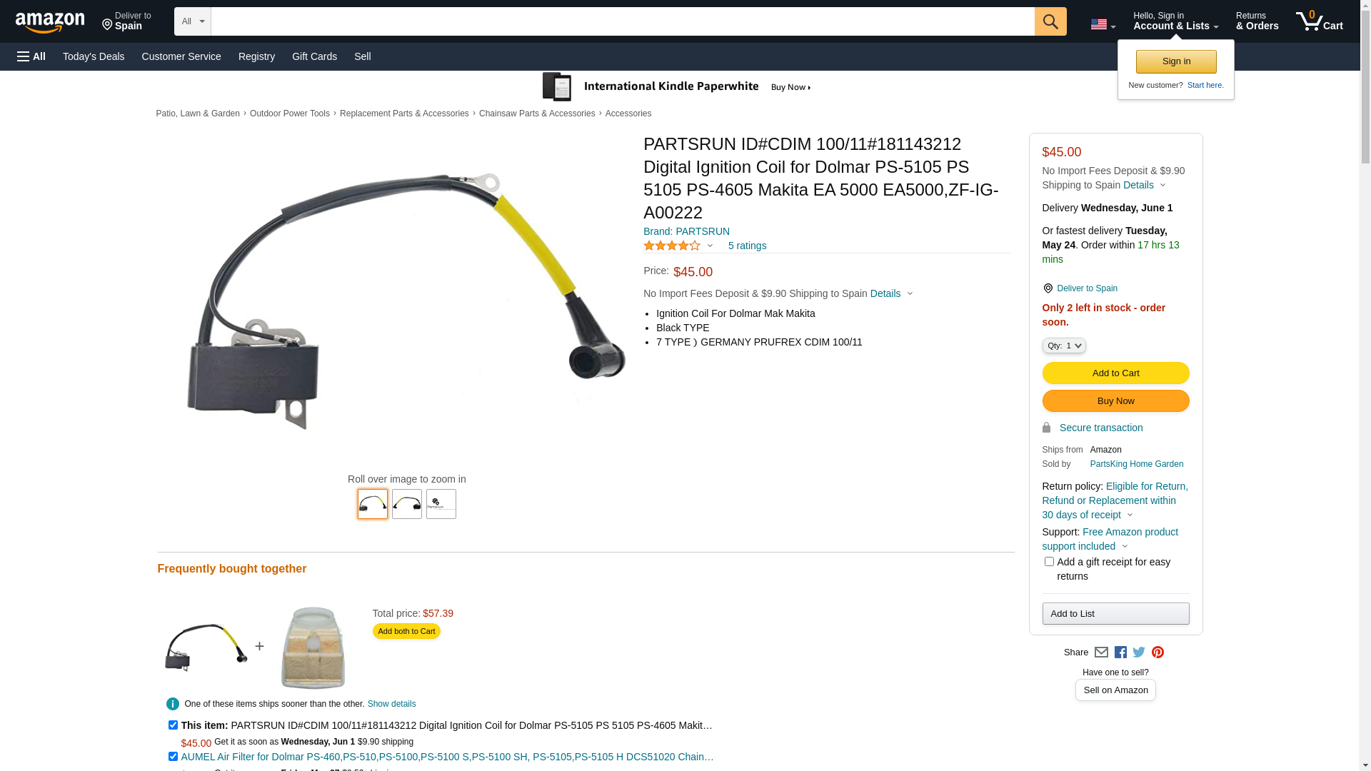 PARTSRUN ID#CDIM 100/11#181143212 Digital Ignition Coil with Spark Plug for Dolmar PS-5105 PS 5105 PS-4605 Makita EA 5000 EA5000,ZF222-HHS