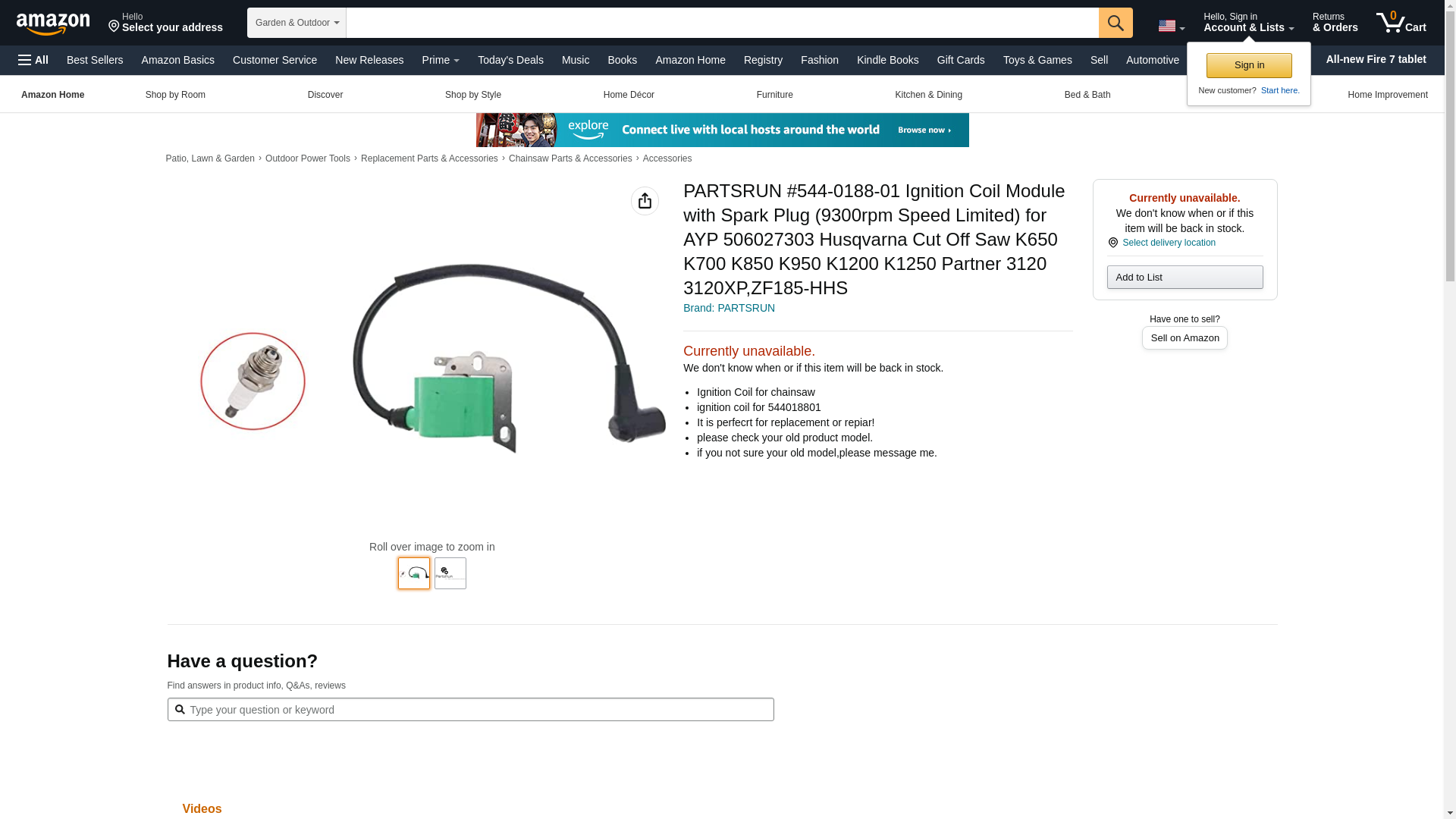 PARTSRUN #544-0188-01 Ignition Coil Module with Spark Plug (9300rpm Speed Limited) for AYP 506027303 Husqvarna Cut Off Saw K650 K700 K850 K950 K1200 K1250 Partner 3120 3120XP,ZF185-HHS