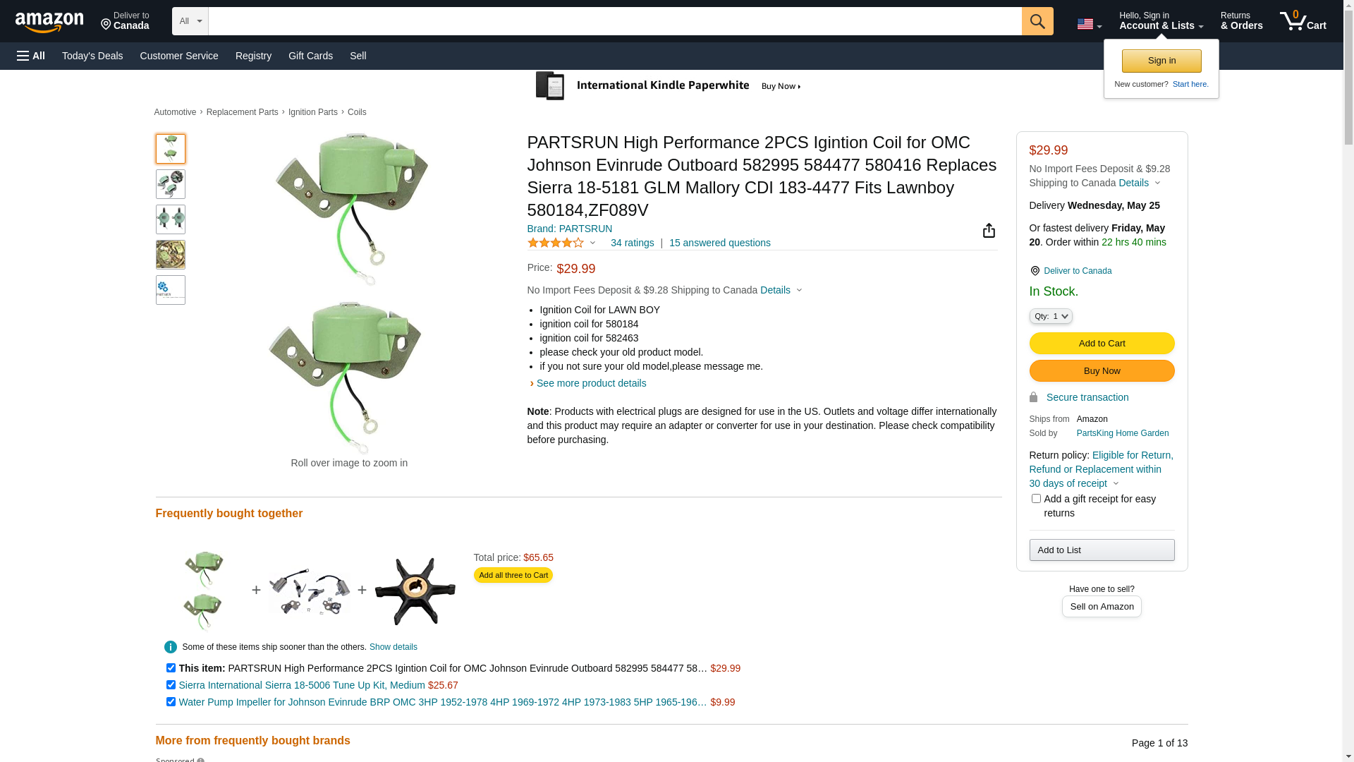 PARTSRUN High Performance 2PCS Igintion Coil for OMC Johnson Evinrude Outboard 582995 584477 580416 Replaces Sierra 18-5181 GLM Mallory CDI 183-4477 Fits Lawnboy 580184,ZF-IG-A00089V