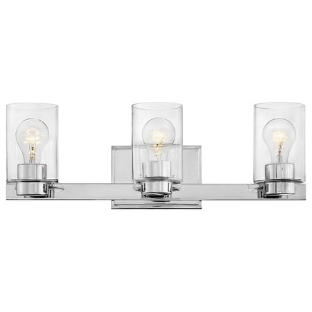 Hinkley Miley Collection Three Light Clear Glass Bathroom Vanity Fixture, Chrome