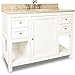 Traditional Bathroom Vanity by Hardware Resources. This 48' wide solid wood vanity features clean lines with a stepped door profile for a modern look. The Cream White finish is soft to complement most decor, yet bold enough to make a statement. With four working drawers, two on each side of a large cabinet with adjustable shelf, and open bottom shelves flanking the center cabinet, this vanity features ample storage space. Drawers are solid wood dovetailed drawer boxes fitted with soft-close full extension slides and the cabinet features integrated soft close hinges. This vanity has a 2.5CM engineered Emperador Light marble top preassembled with an H8810WH (17' x 14') bowl, cut for 8' faucet spread, and corresponding 2CM x 4' tall backsplash Model VAN091-48-T by Hardware Resources.