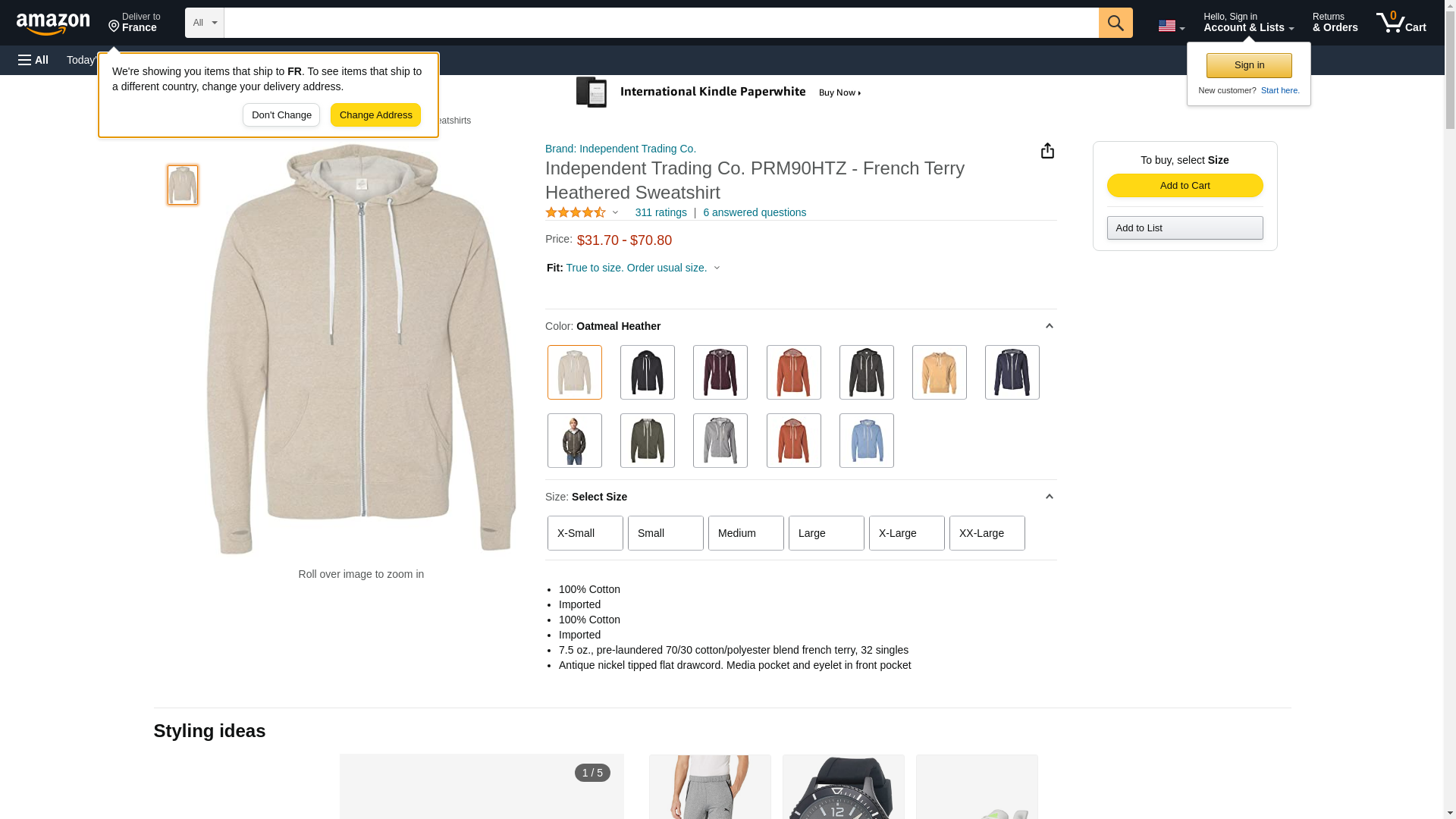 Independent Trading B81376364 Unisex Heathered French Terry Full-Zip Hooded Sweatshirt, Oatmeal Heather - Medium