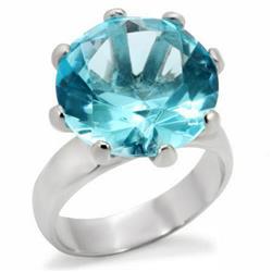 Alamode S412504-8 Matte Silver 925 Sterling Silver Ring with Top Grade Crystal, Sea Blue - Size 8
