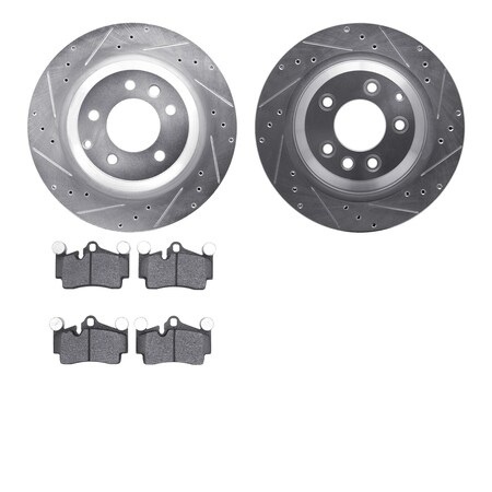 Dynamic Friction Company Rear Brake Rotors-Drilled and Slotted-Silver with 5000 Euro Ceramic Brake Pads 7602-02017