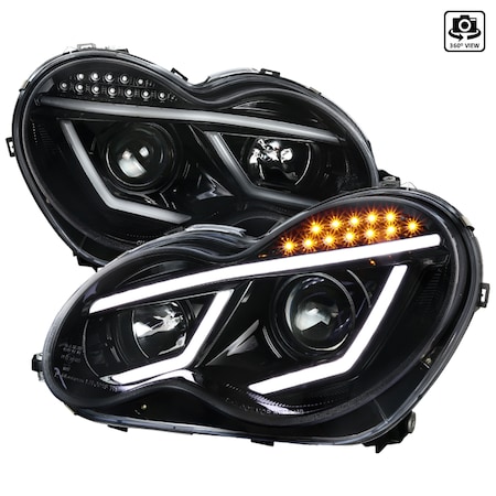 Jet Black Mercedes Benz W203 C-Class C230 C320 LED DRL Bar Projector Headlights