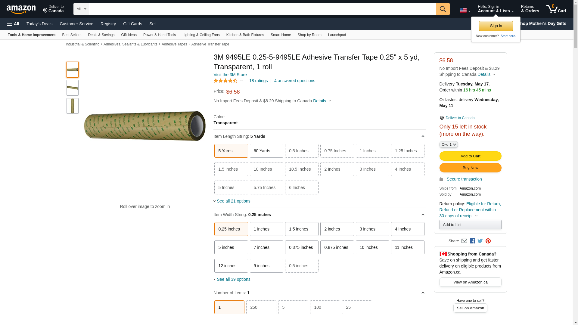 - Specifications: 0.0067 in. thick polyester tape roll measures 0.25 in. in width and 15 ft. in length. This transparent tape bonds instantly to similar and dissimilar materials